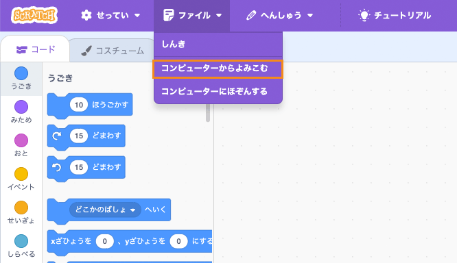 (1)自分のパソコンにプログラムファイル(sb3)を保存する方法